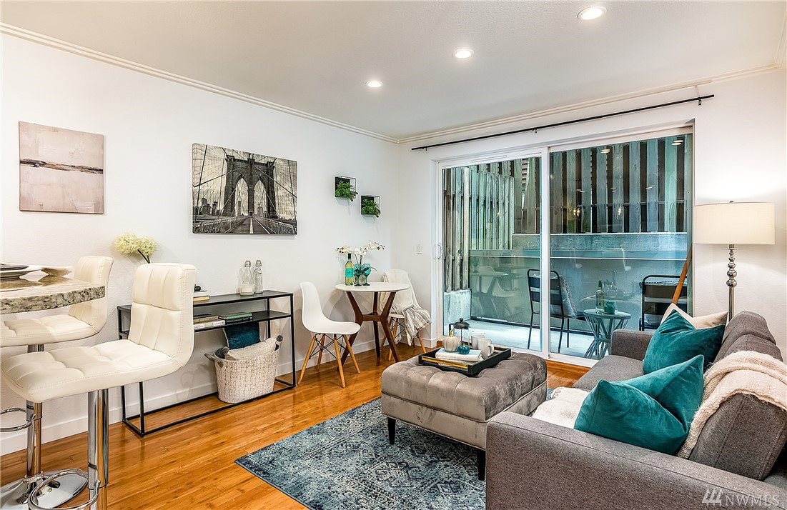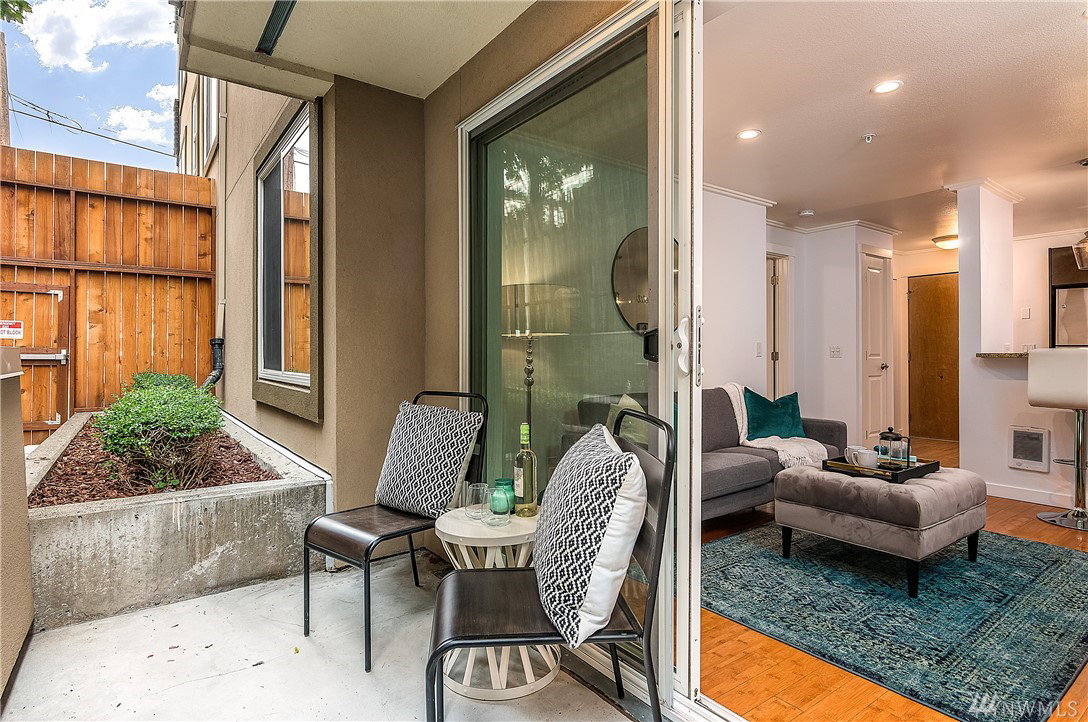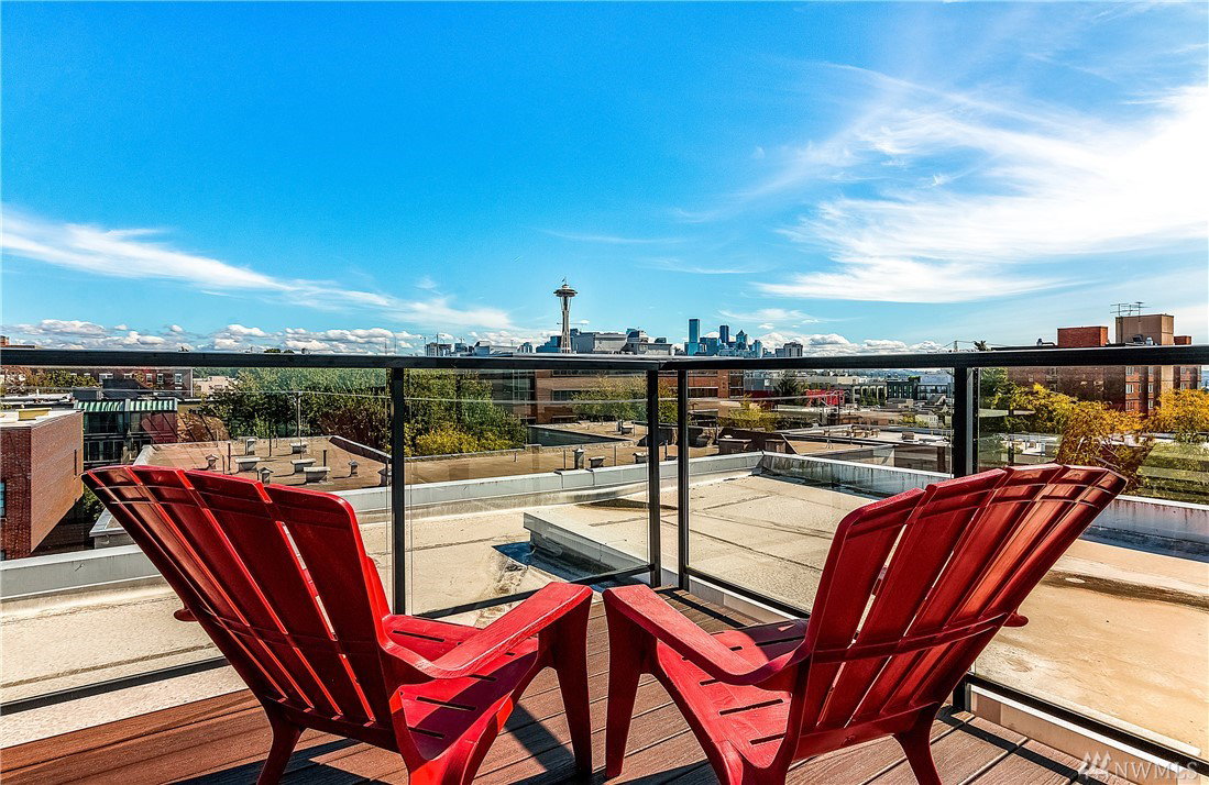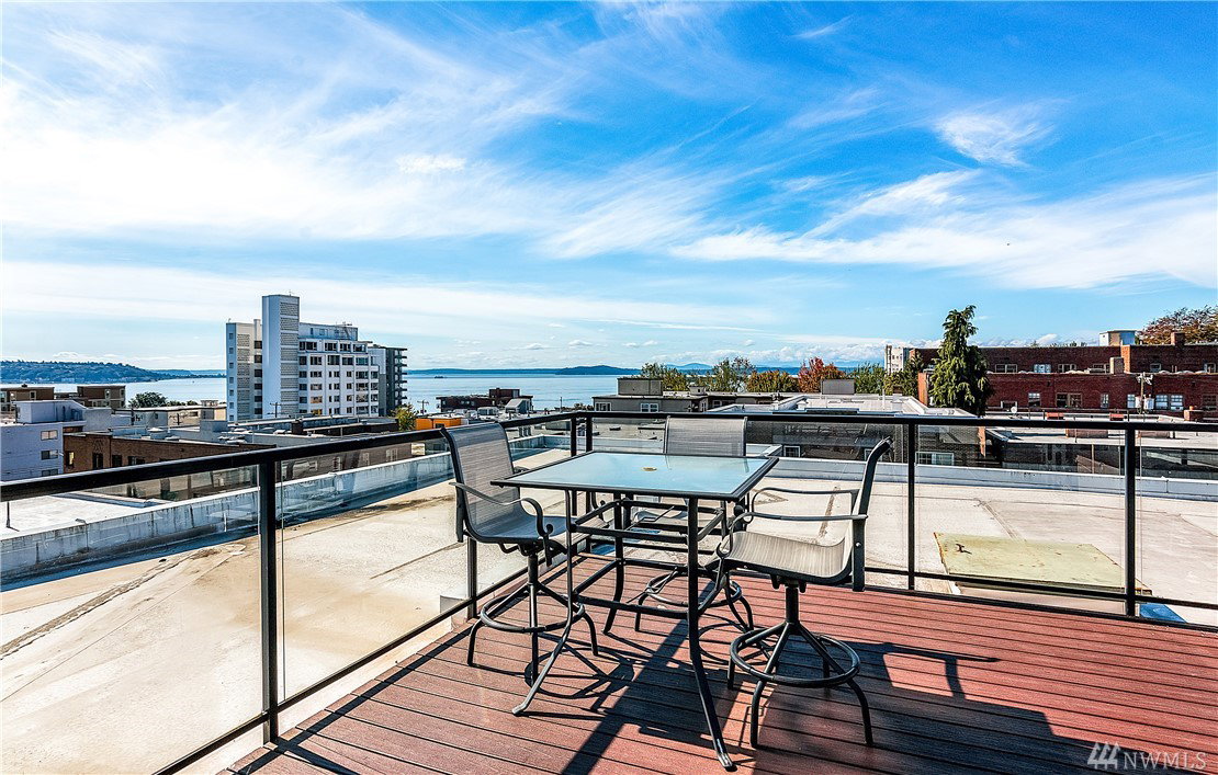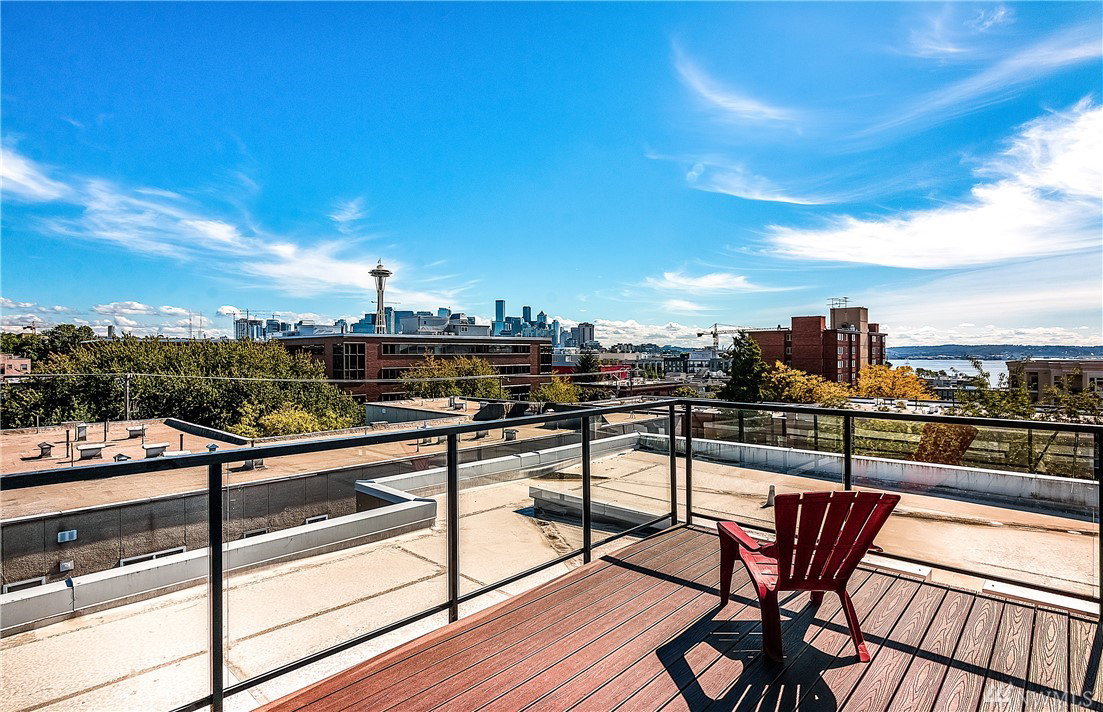 Charming & crisp condo nestled in Queen Anne on a quiet street! Excellent walkability & Walk Score of 91. Bldg has a common roof deck w/ amazing views of Elliott Bay, Mt. Rainier & the Space Needle. The unit features new paint, new bdr carpet, bamboo floors in the main living area, SS appliances, granite countertops, a breakfast bar, W/D in unit, a spacious walk-in closet, a private patio & TWO parking spaces. HOA dues cover water, sewer & garbage. No rental cap. Very secure bike room.
