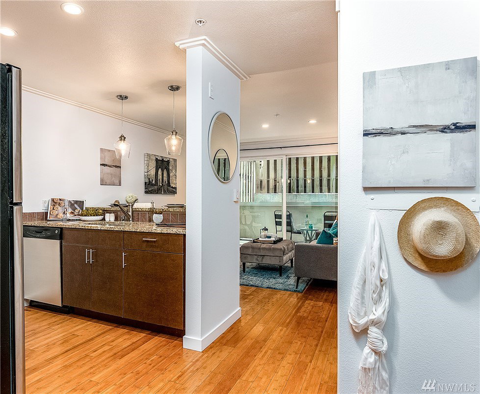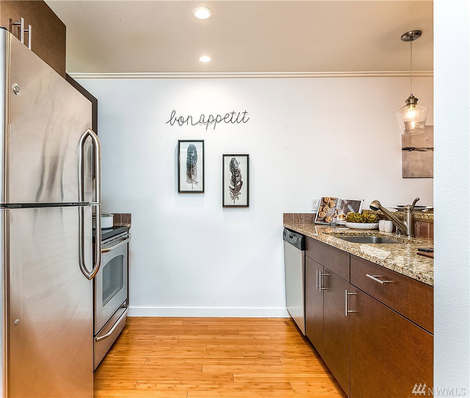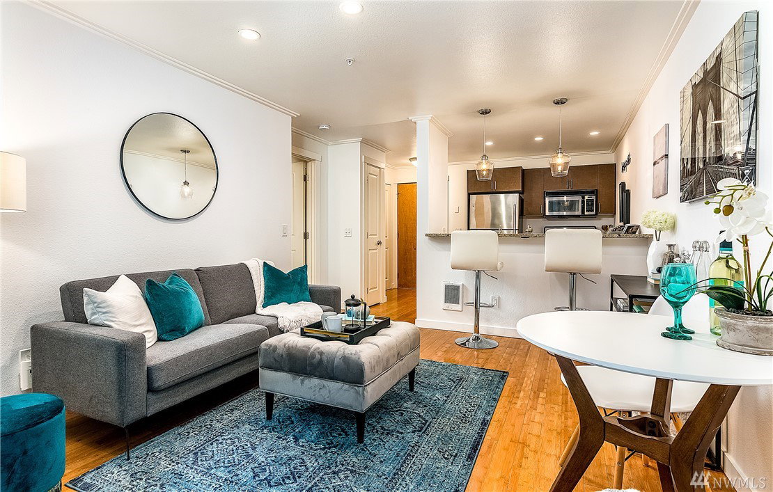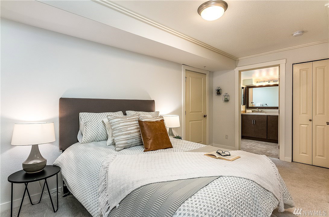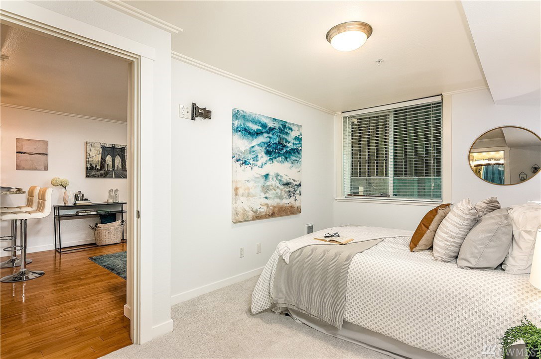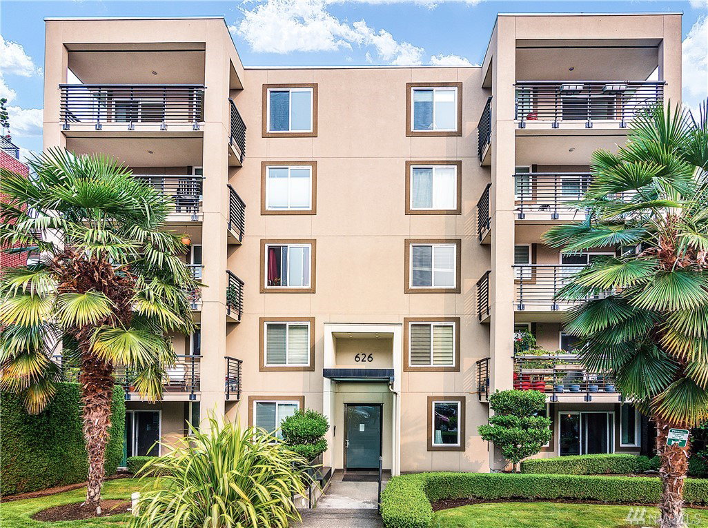 Charming & crisp condo nestled in Queen Anne on a quiet street! Excellent walkability & Walk Score of 91. Bldg has a common roof deck w/ amazing views of Elliott Bay, Mt. Rainier & the Space Needle. The unit features new paint, new bdr carpet, bamboo floors in the main living area, SS appliances, granite countertops, a breakfast bar, W/D in unit, a spacious walk-in closet, a private patio & TWO parking spaces. HOA dues cover water, sewer & garbage. No rental cap. Very secure bike room.