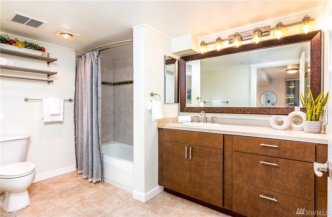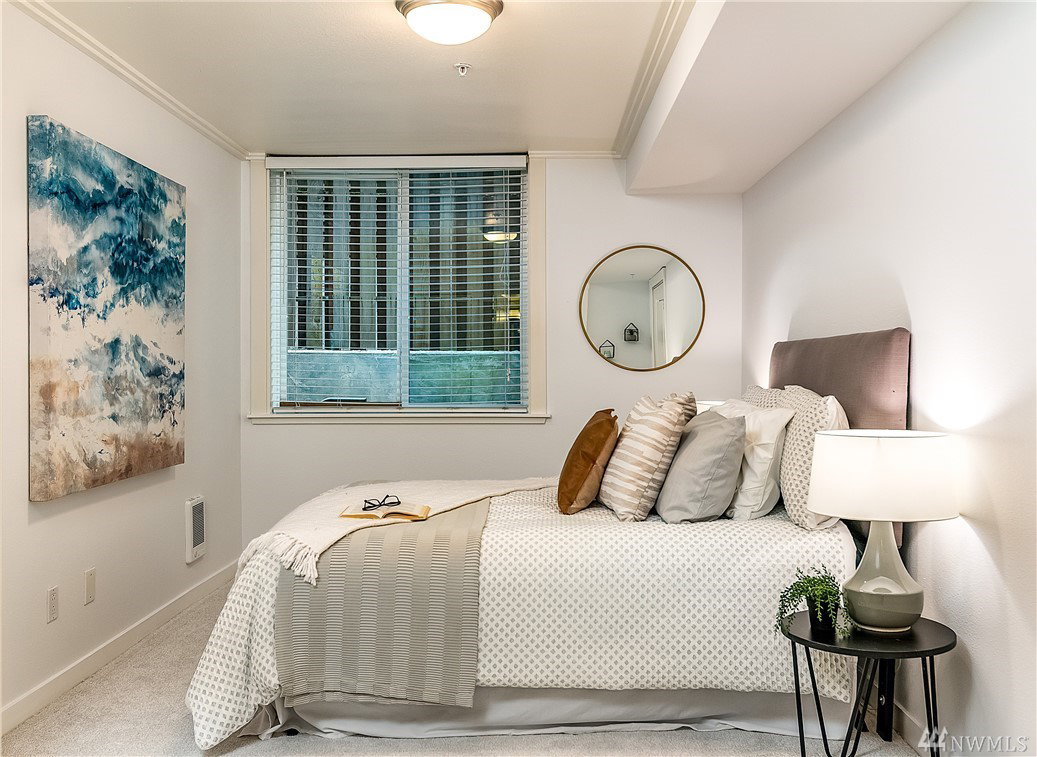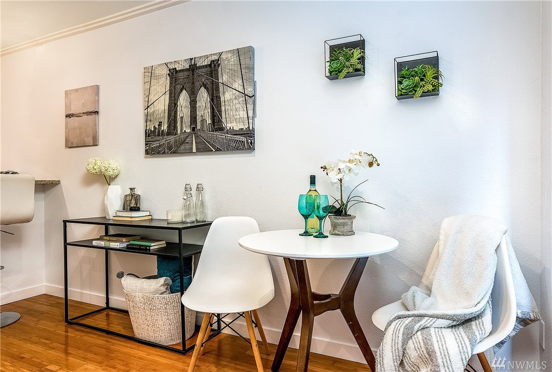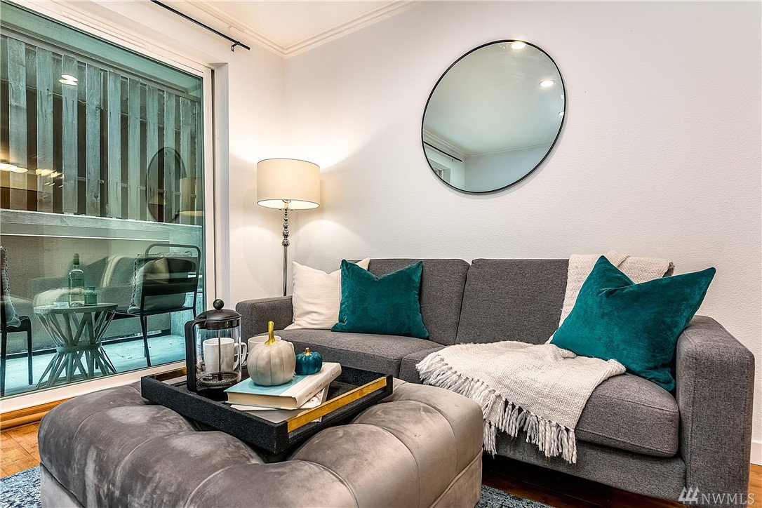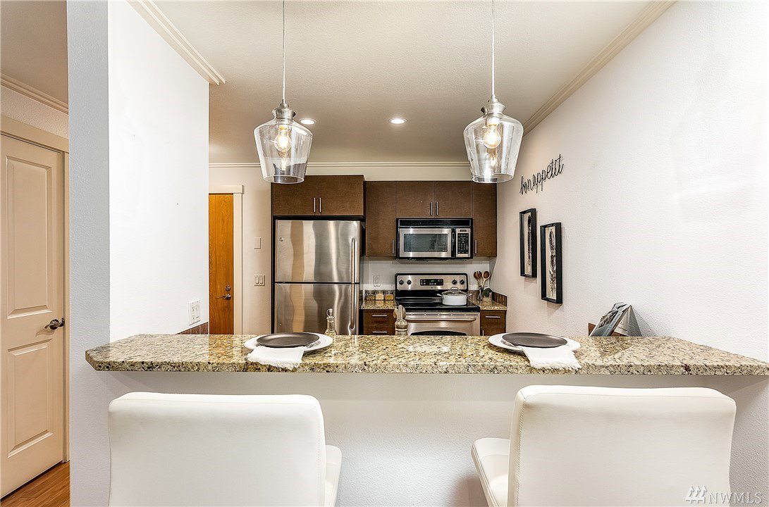 Charming & crisp condo nestled in Queen Anne on a quiet street! Excellent walkability & Walk Score of 91. Bldg has a common roof deck w/ amazing views of Elliott Bay, Mt. Rainier & the Space Needle. The unit features new paint, new bdr carpet, bamboo floors in the main living area, SS appliances, granite countertops, a breakfast bar, W/D in unit, a spacious walk-in closet, a private patio & TWO parking spaces. HOA dues cover water, sewer & garbage. No rental cap. Very secure bike room.